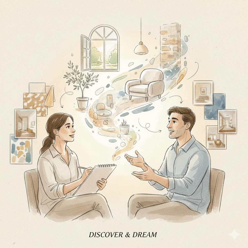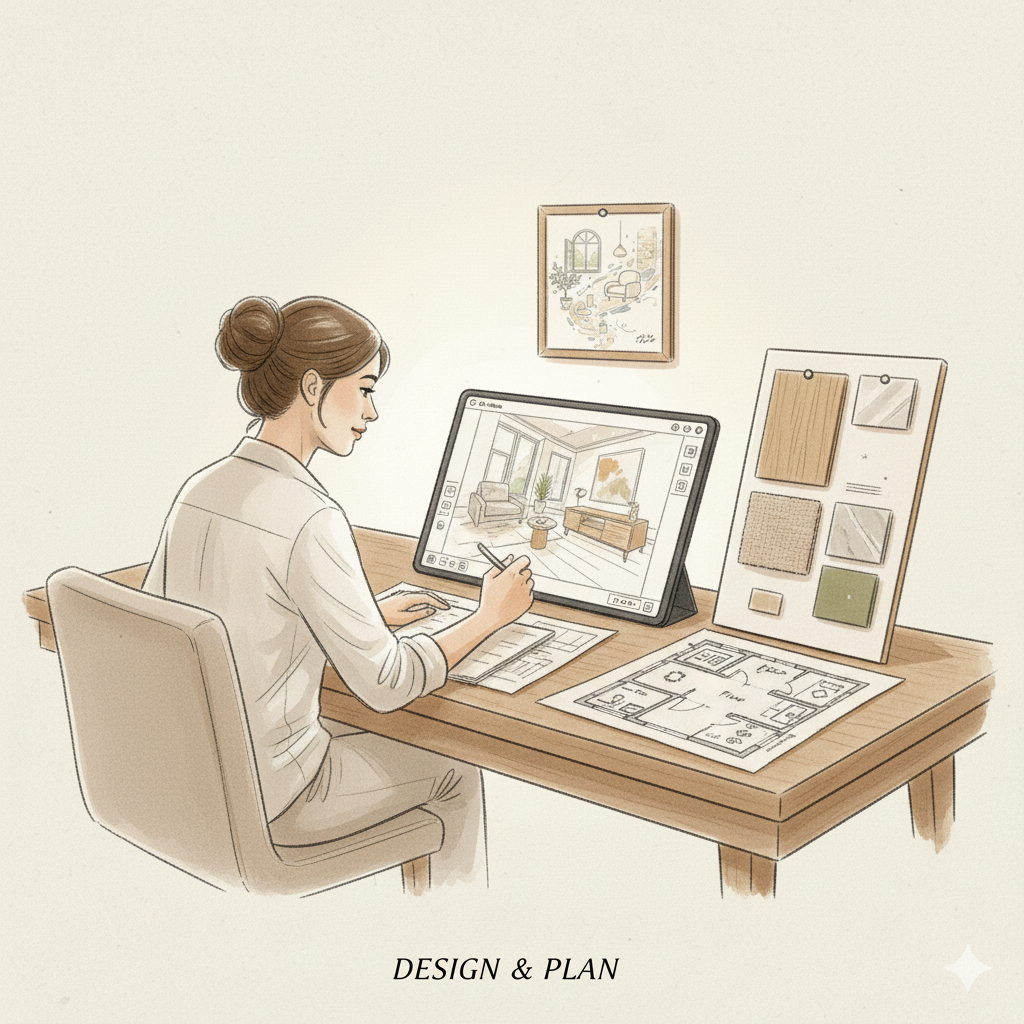 We start by understanding you โ your lifestyle, taste, and aspirations. Through detailed consultations, mood boards, and inspiration sharing, we craft the vision for your dream space.