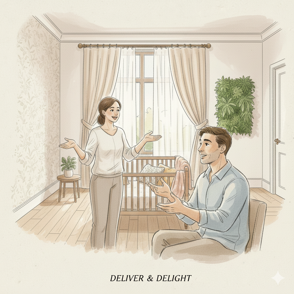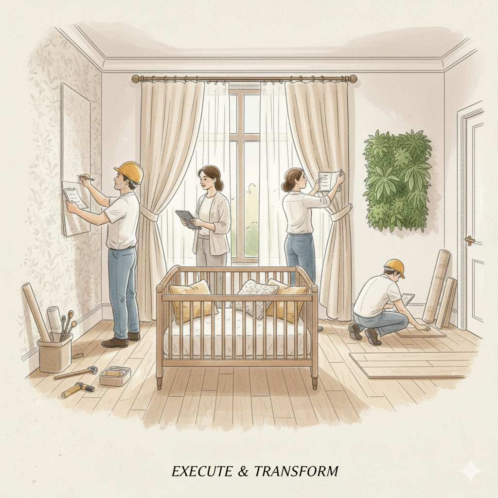 Wallpaper, Blinds, Curtains, Flooring, Green wall, cot cushion, every detail is managed with precision. Our trusted craftsmen and project managers ensure flawless execution โ on time, every time.